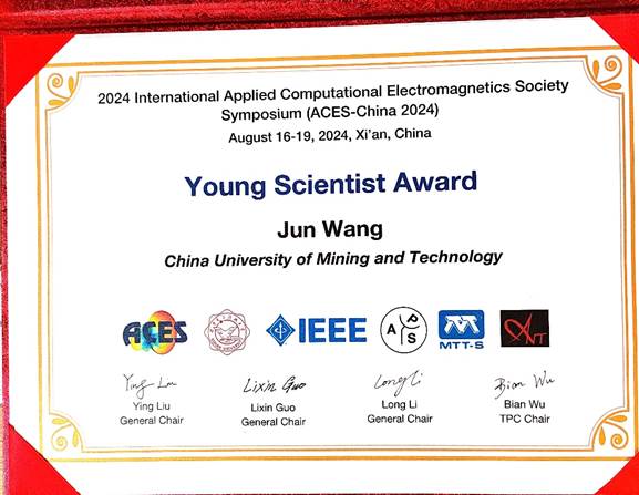 2024816-19日,国际应用计算电磁学会议(ACES-China 2024)在西安成功举办。此次会议由国际应用计算电磁学协会和西安电子科技大学主办,十多家大学、研究所和企业联合承办,会议规模盛大。经会议评奖委员会的推举和评选,中国矿业大学电磁与智能感知团队王俊博士因其在射频微波器件、天线等方面的贡献,荣获“青年科学家奖”。