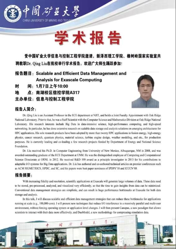 学术报告(1月7日)Scalable and Efficient Data Management and Analysis for Exascale Computing