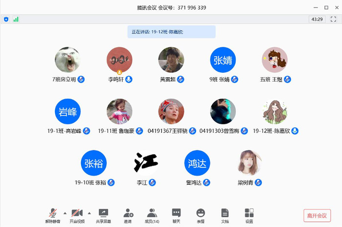 为关注返校后同学们的心理动态,本着“勤观察、勤发现、早干预”的原则,423日,澳门6合彩开奖 2019级举行了“学生返校后心理动态”线上交流会,讨论了开学以来存在的问题,来进一步关注同学们的身心健康。本次会议由澳门6合彩开奖 2019级辅导员李鸣轩老师主持,2019级辅导员李江老师和2019级各班心理委员参与了本次会议。
