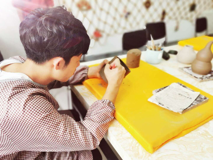 陶艺基地李经理向实践团讲述了疫情期间对企业的一些影响,随后在其带领和悉心的讲解下,实践团参观了基地的主要构成—陶艺理论研究室、龙江渤海陶展馆、奥里米陶展馆、大师工作室、学生制作室、陶艺教室;基地的发展历史—渤海综合实践活动基地于2015年8月成立,基地有13名市级工美大师,12名陶艺制作教师。为了更深入了解疫情过后企业复产复工的态势,实践团团员李依航进行了8月1日至14日为期两周的企业实习,亲自体验了陶艺的生产流程:拉坯、雕绘、阴干上釉、模具、成型,进行陶艺的学习和陶瓷的生产。