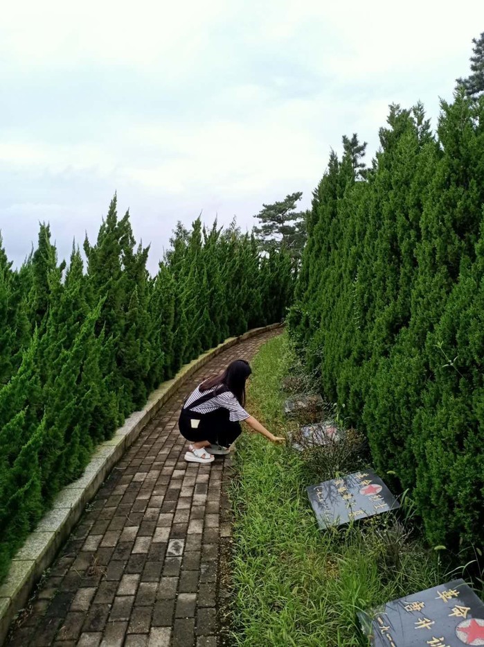 8月17日,陈秋琴同学,在提前查阅资料,做好充足准备后,前往福鼎革命烈士陵园,依次参观了中国工农红军闽东独立师纪念碑和中国工农红军挺进师纪念碑,绕纪念碑一周并献上白花,陈秋琴在与烈士陵园管理处的工作人员的交谈中得知,建园十余年来工作人员每年接待参观、扫墓的干部、群众越来越多,由此可见,在政府及教育机关的共同努力下,群众重视及追寻红色革命历史,缅怀革命先烈的意识有所提升。