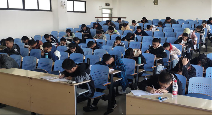 下午13:45,监考人员组织考生入场并按序号坐在指定位置。考试开始前,考生将手机、笔记本等违规物品放到指定位置,随后,监考人员强调考场纪律。14:00整,考试正式开始。考试期间,考场安静,气氛严肃,监考人员认真负责,精力集中,考生沉着冷静,遵守考场纪律。考试结束后,监考人员收取试卷并交于判卷人员,考生们有序退场。本次考试的试卷将由判卷人员认真批改,最终分数统计后将发给各班学习委员,并由学委将试卷返还到个人。