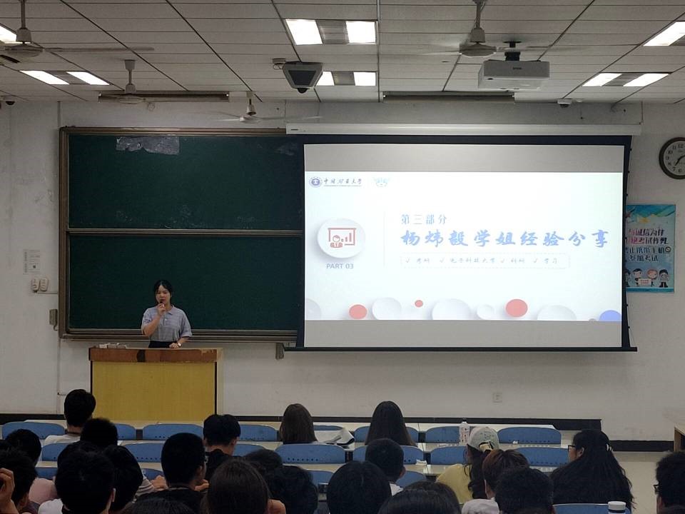 班会由一段毕业答辨视频引入,引起同学们对于大学生活的思考。本次会议邀请了17级考研至电子科技大学的杨炜毅同学和17级保研到清华大学的林泽南同学分享他们的大学学习经历以及考研经验。杨炜毅同学着重强调了生涯规划的重要性,阐述了学习方法的关键作用,她细致全面的讲述引来同学们的阵阵掌声;林泽南同学从学习和竞赛两方面向同学们分享了自己的经历,回答了同学们的很多疑问,激发起同学们刻苦学习的斗志。