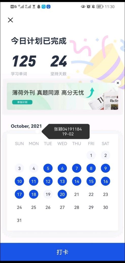 打卡截图