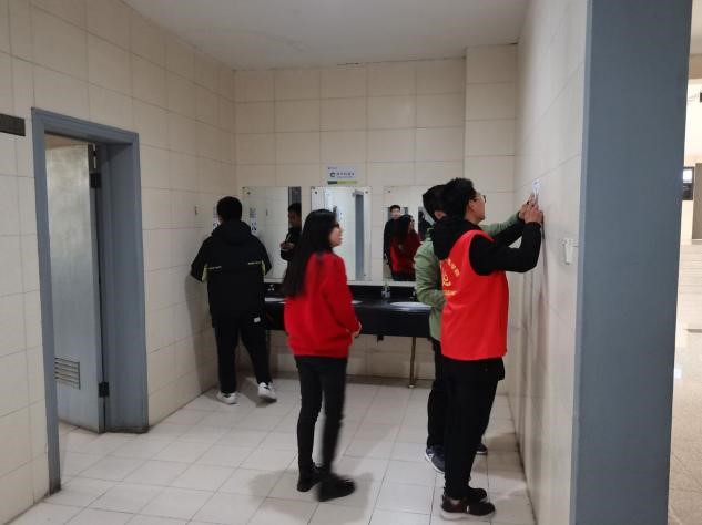 活动在博五教学楼A区开展。电信2班的同学们按组别分别前往志愿区域,在厕所洗手台处张贴标语并检查水龙头的出水状况。在此之后,同学们在博五楼的其他区域进行了标语的粘贴,进一步加大了对节约用水理念的宣传。“节约用水,功在当代,利在千秋”,“节约水光荣,浪费水可耻”,“惜水、爱水、节水,从我做起”,通过一句句生动形象的标语,潜移默化地让大家意识到生活中水资源的浪费现象,进一步树立起惜水、爱水的环保意识。