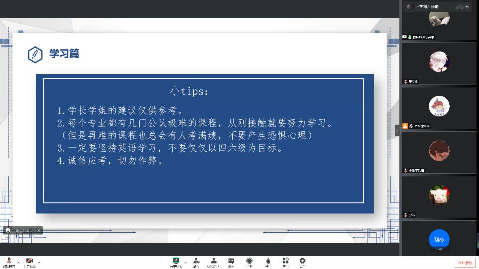 学习部于线上举办了“逐梦之旅”新生经验交流会,邀请优秀学长学姐演讲,搭建起新生和老生互相交流、展现自我的平台。