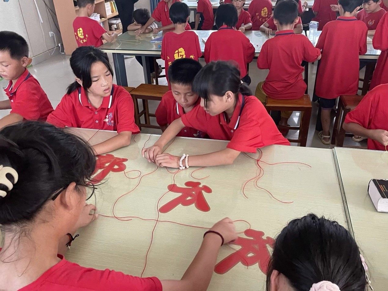孩子们共同编织手链