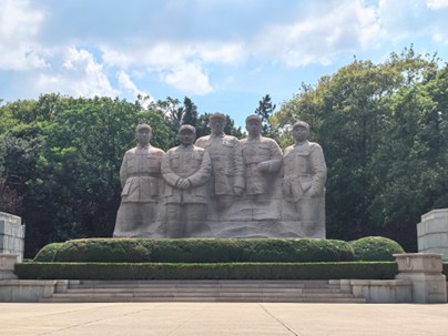 当日,实践团成员在讲解员引导下,开启探访历史之旅。从序厅“人民的胜利”主题雕塑起,成员跟随讲解,逐步了解淮海战役经过。战役厅内,按时间轴陈列的史料、实物,串联起战前暗流涌动的局势与战役的惨烈。展柜里,锈迹斑斑的武器、带着补丁的衣物,表现出战斗的艰辛。支前厅中,有“小推车推出来的胜利”的场景,有民工支前的故事,让“人民是真正的铜墙铁壁”得到印证。参观途中,一位成员伸出手轻抚英烈名字墙上凹凸的姓名,其他成员看到后驻足沉思。这些年轻的生命,在战火中定格,以无畏的姿态诠释了信仰的重量,引发团队成员对革命信仰的思考。