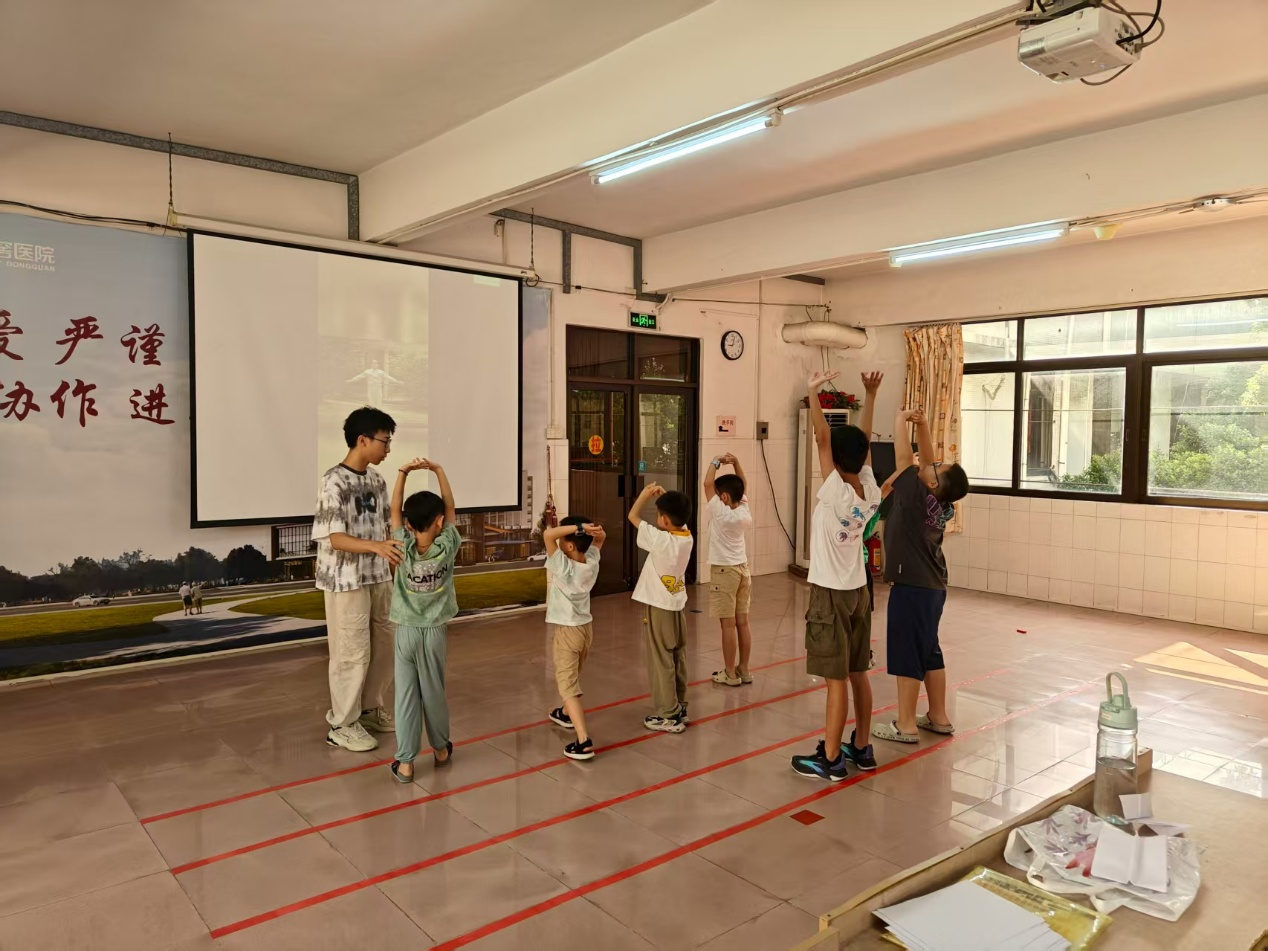 “医路童馨”实践团队在广东东莞道滘医院开展“夏日暖托・益路童行”暑期托管活动,丰富患儿暑期生活。