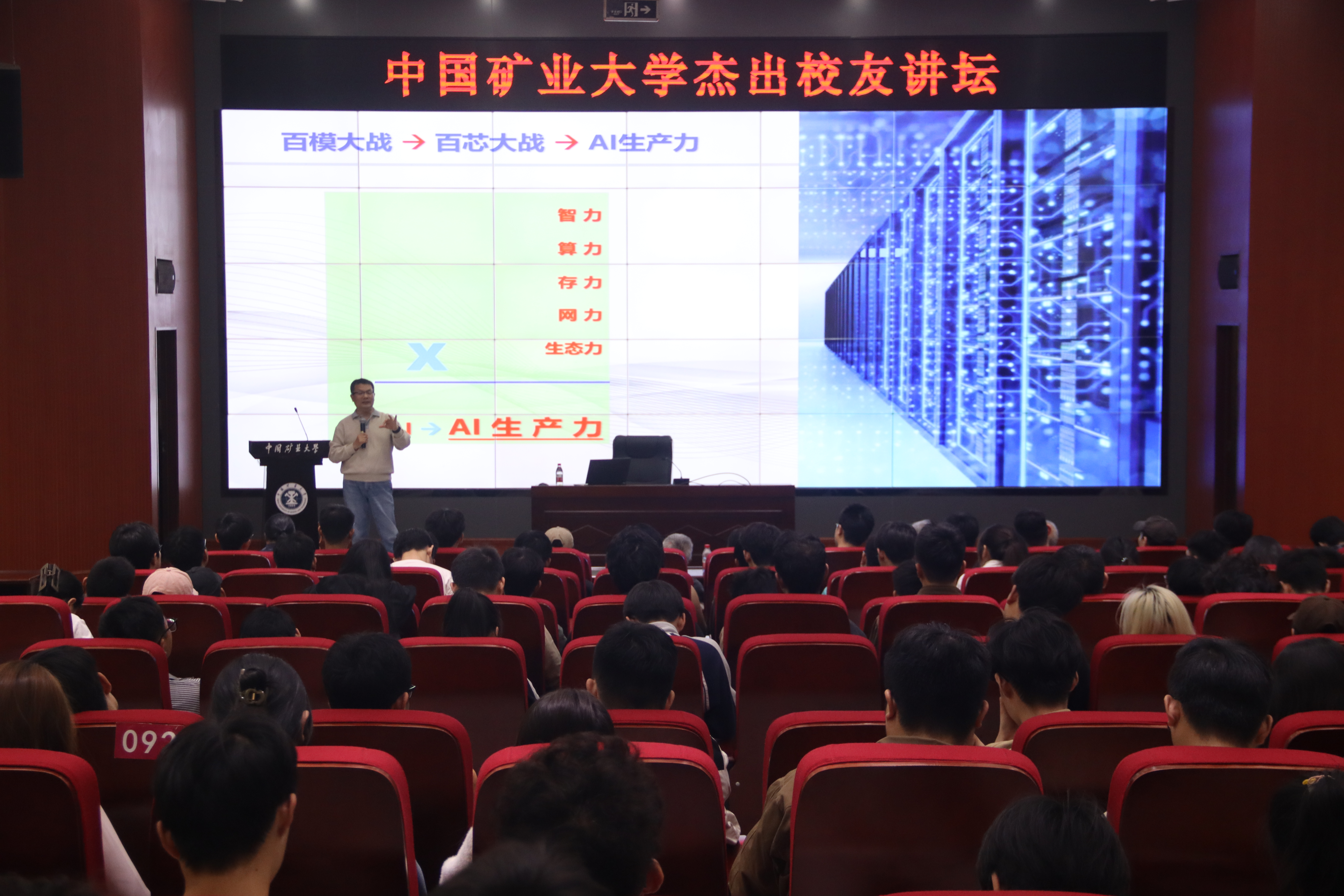 王志敏向参加报告会的师生们分享了自身在中国矿业大学求学以及毕业后职业发展的经历。他围绕集成电路领域,从产业的环境、生态的重构等方面进行了介绍,分析了集成电路战略的机遇与挑战,分享了产学研+标准/专利/生态的思路,描绘了从学术到技术、从产品到产业,共建微电子新生态及AI生产力的壮阔前景。他结合新质生产力,阐述了全球化产业人才竞争需要数量和质量的双重提升,论述了“发挥各方优势,共建产业合力”的理念。