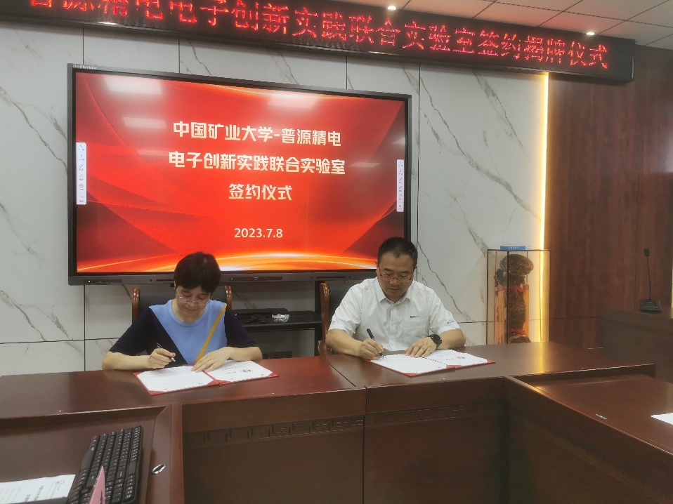 双方共同签署了中国矿业⼤学-普源精电电⼦创新实践联合实验室合作协议,并为联合实验室揭牌。