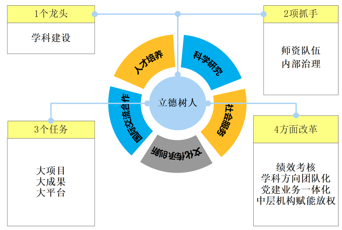 3.完善保障机制。一是领导带头抓落实。学院领导班子认真履行“把方向、管大局、做决策、抓班子、带队伍、保落实”的职责,坚决扛起主体责任,实施 “院领导牵头推进、中层机构负责人跟进落实、全院师生协同配合”工作机制,统筹推进学院改革与事业发展各项工作。二是激发中层机构活力。细化分解学科评估指标、“十四五”规划目标、学校党建业务一体化考核、学院年度重点工作、安全工作等目标任务,学院坚持统筹发展与安全,学院与15个内设中层机构负责人签署年度考核目标工作任务书、安全责任书,放权赋能,激发中层机构活力。学院实施了以学科建设为核心的绩效考核,尊重并充分体现各岗位、各类人员对学院发展所作的积极贡献,对专任教师、管理人员、实验技术人员、劳务派遣人员按不同赛道、不同成果类型或突出贡献给予相应的绩效奖励,调动教职工的积极性创造性。三是资源保障有力。通过开源节流,为学院改革发展重要工作的资金投入进行了制度性安排。优化资源配置,为全院重新组建的10个科研方向团队的办公实验用房、经费等提供有力保障。四是服务效能提升。多措并举提升学院机关人员工作能力和服务意识,积极营造有利于干事创业的良好环境,敢于为担当者担当、为负责者负责、为干事者撑腰,着力发挥院机关在学院运行中的“发动机”作用。