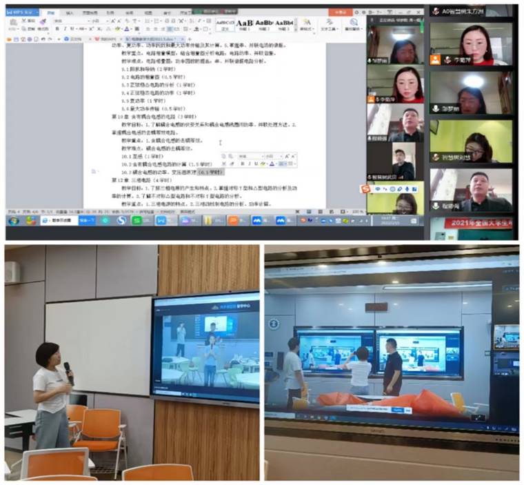 为保证同步课堂活动的有效开展,切实促进两校电路分析课程团队的人才培养和教学改革工作,前期双方教师多次开展教学研讨,针对教学理念、教学内容、教学设计、互动形式、活动开展以及学生组织等方面做了多次充分研讨和交流,并在智慧树和我校公共教学服务中心的支持下提前多次三方联调确保设备通信和网络安全。
