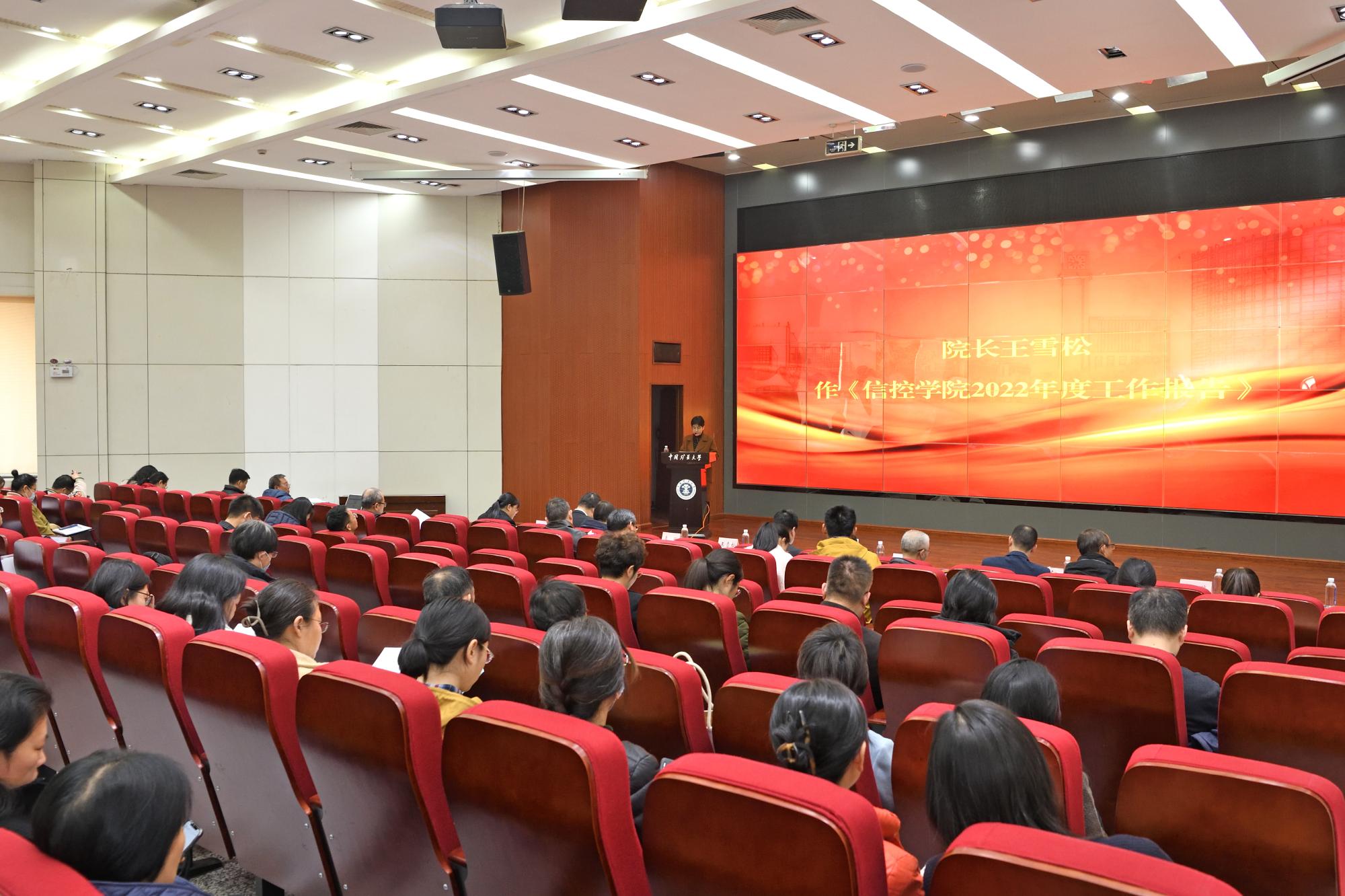 王雪松院长作2022年度学院工作报告。她全面总结了2022年度学院在党建与思想政治工作、人才培养、师资队伍建设、学科建设与科学研究、社会服务、国际交流与合作等六个方面的工作进展及取得的成绩,分析了当前学院发展面临的机遇与挑战,并从专业建设与本科教学、研究生管理、学科建设与科研工作、党建与思想政治工作、内部治理体系建设等五个方面,对学院2023年重点推进和提升的工作进行了部署。陈平副院长作了2022年度财务工作报告,他还围绕学科评估指标体系,聚焦调动每一名教职工投身学院工作的积极性、主动性、创造性,详细解读了学院奖励性年度综合绩效考评实施办法修订的相关内容及说明。李世银副院长结合学院“十四五”规划,解读了学科方向团队化建设的实施方案和开展有组织科研的相关情况。