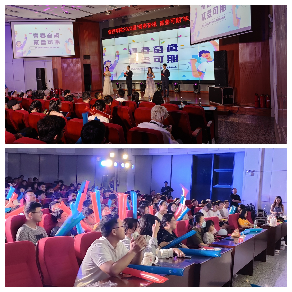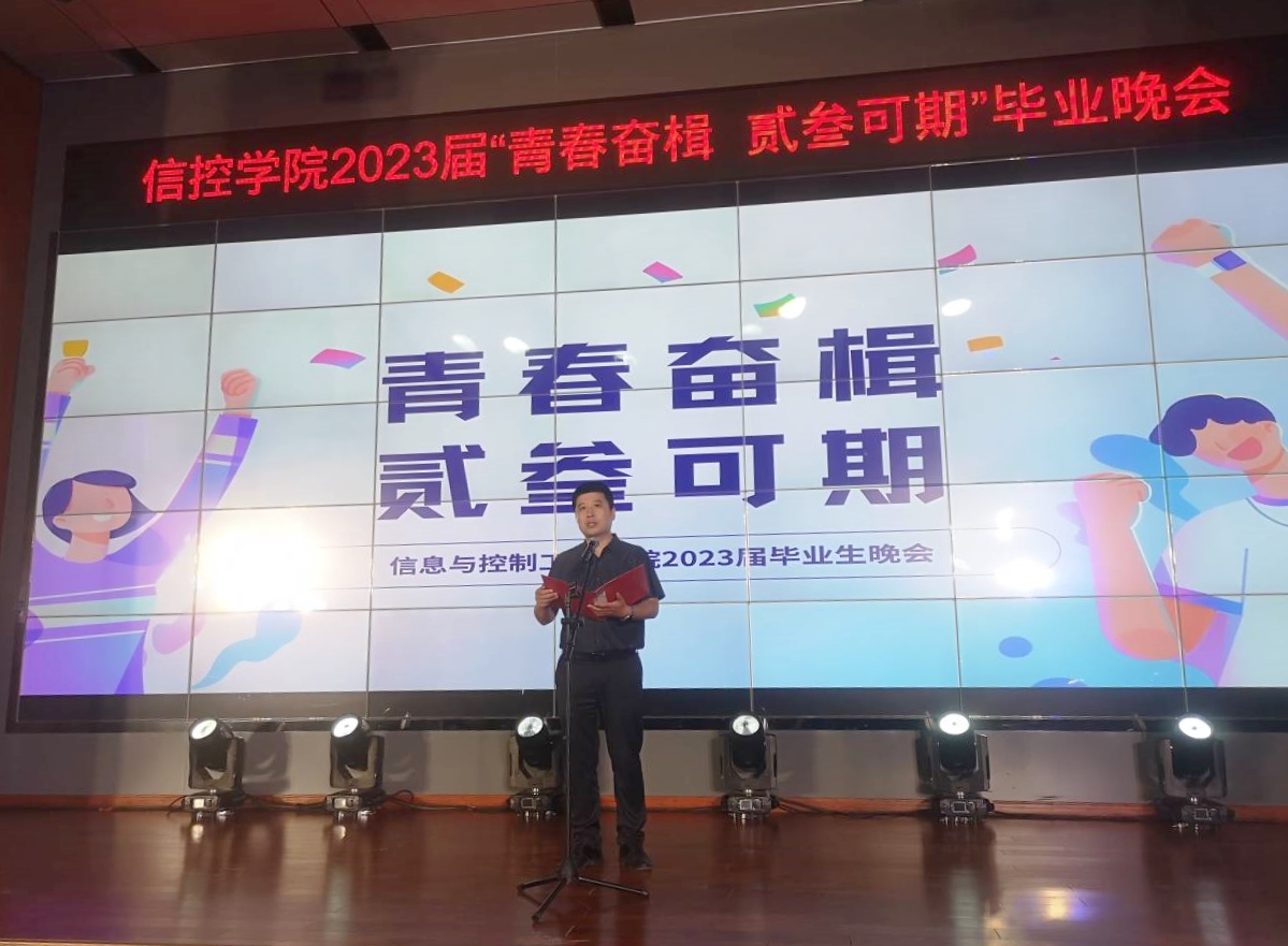 “青春奋楫,贰叁可期”2023届毕业晚会在信控楼A101报告厅举行,学院党委书记程德强、党委副书记翟文艳、副院长李世银、自动化系主任朱美强,毕业班辅导员管钰、李鸣轩、罗程程等莅临现场,与2023届毕业生欢聚一堂。