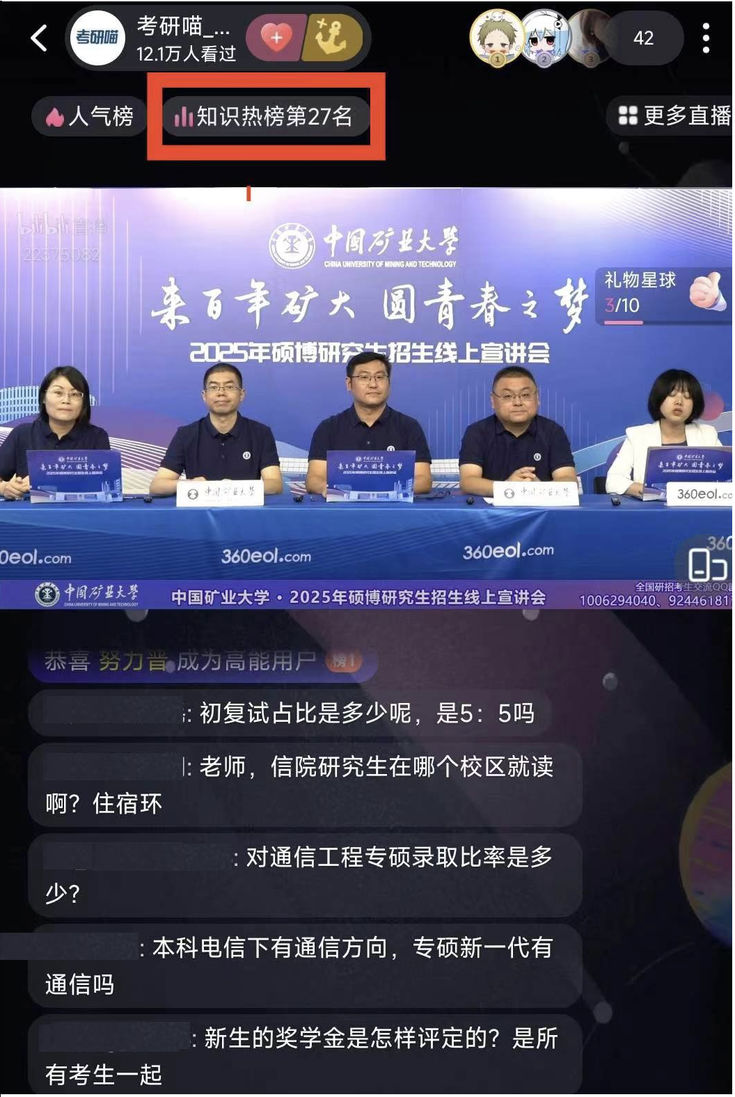 线上直播即时观看人数12.1万人,冲上了知识热榜第27名。