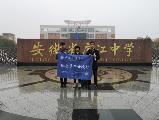 为更好地宣传中国矿业大学在高中母校的知名度,展示矿大的办学规模、发展历史、学风教风和周边环境,信控学子张庚辰、宋子瑞、张宇、张姗、胡佳明五位同学积极策划并于1月18日上午,开展“镜湖有约•优秀学子母校行”活动。