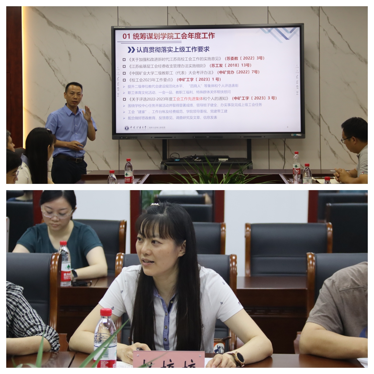 程德强对章毛平一行来院调研表示欢迎,并对校工会一直以来对学院的关心支持表示感谢。随后,陈平介绍了学院党委认真贯彻落实学校二级教代会考评办法、校工会2023年工作要点以及聚焦学院改革与事业发展中心工作、统筹谋划学院工会年度工作的思路举措,并从人员组织、工会经费、活动场所、宣传阵地、教职工意见听取和活动参与等方面解读了学院支持工会工作的相关保障机制和工作做法。赵培培汇报了学院工会组织架构、“一会一品”活动、职工福利、二级教代会等工作。