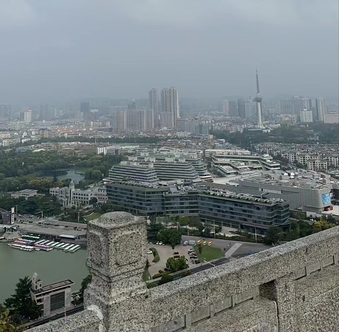 云龙山虽没有泰山之高,也没有庐山之险,却犹如一条“卧龙”。参加活动的老师们沿着蜿蜒曲道,一鼓作气爬上了云龙山的最高地——观景台。站在云龙山地势最高之处,俯瞰云龙湖,瞭望东方明珠的母塔——徐州电视塔,吹着山顶上的风,临栏远眺,全城美景一览无余,尽收眼底。