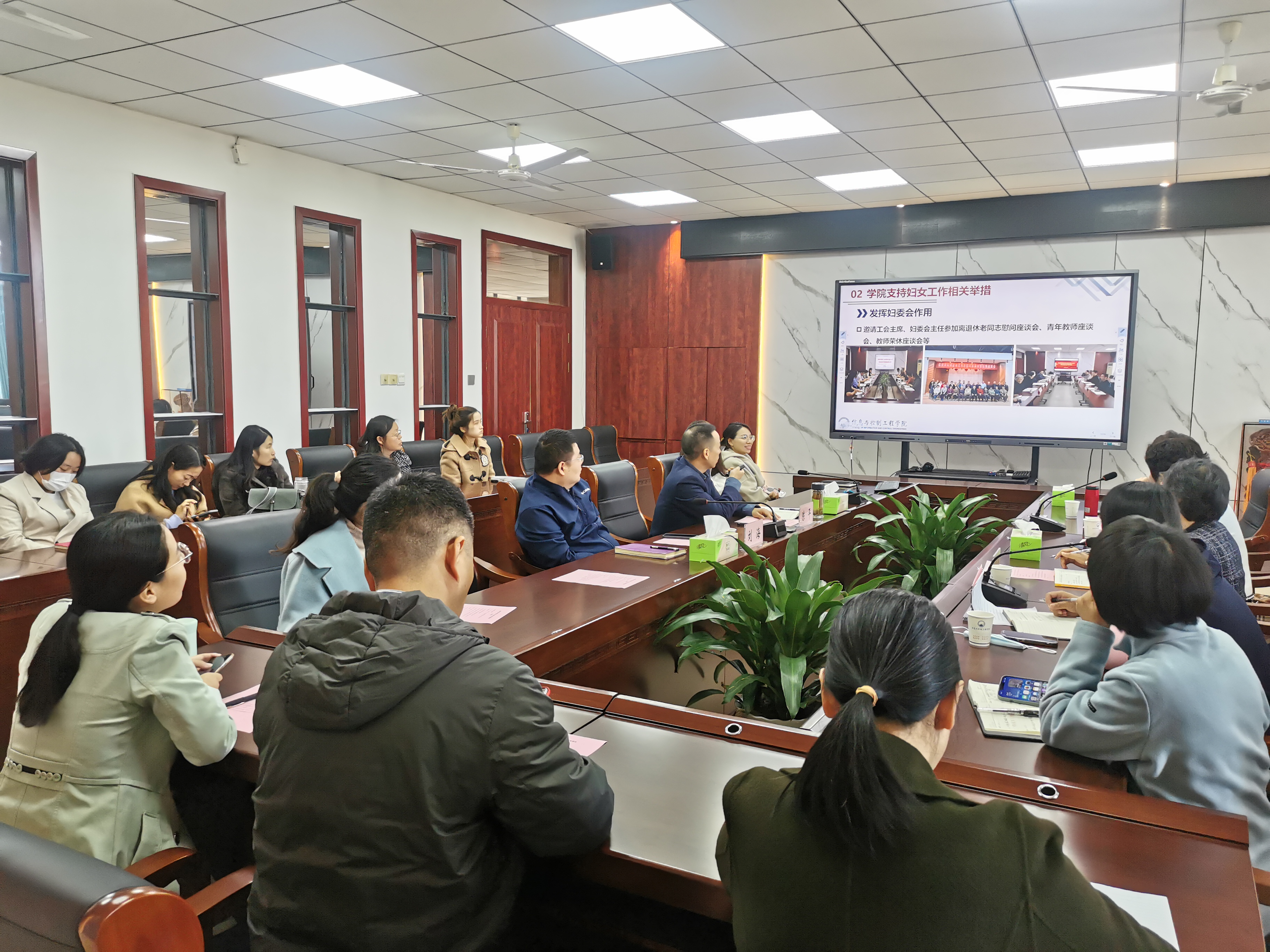 女教职工分布、专任教师中各职称女教师占比以及女教师获评省部级以上(团队)人才称号、科研项目以及校、院公共事务参与情况及取得成绩,解读了学院发挥工会妇委会在参与学院民主管理、制度体系建设与内部治理等工作中的作用以及学院加大经费支持、加强阵地保障等方面的相关措施,分析了学院女教职工在职称晋升、高水平教学科研成果产出、工作家庭平衡等方面存在的问题与困惑,提出了学院下一阶段“围绕中心系统谋划妇委会工作”的总体思路以及通过“组织保障、成长助力、绩效激励、温情服务、环境营造”等加强和改进学院妇委会工作的具体举措。
