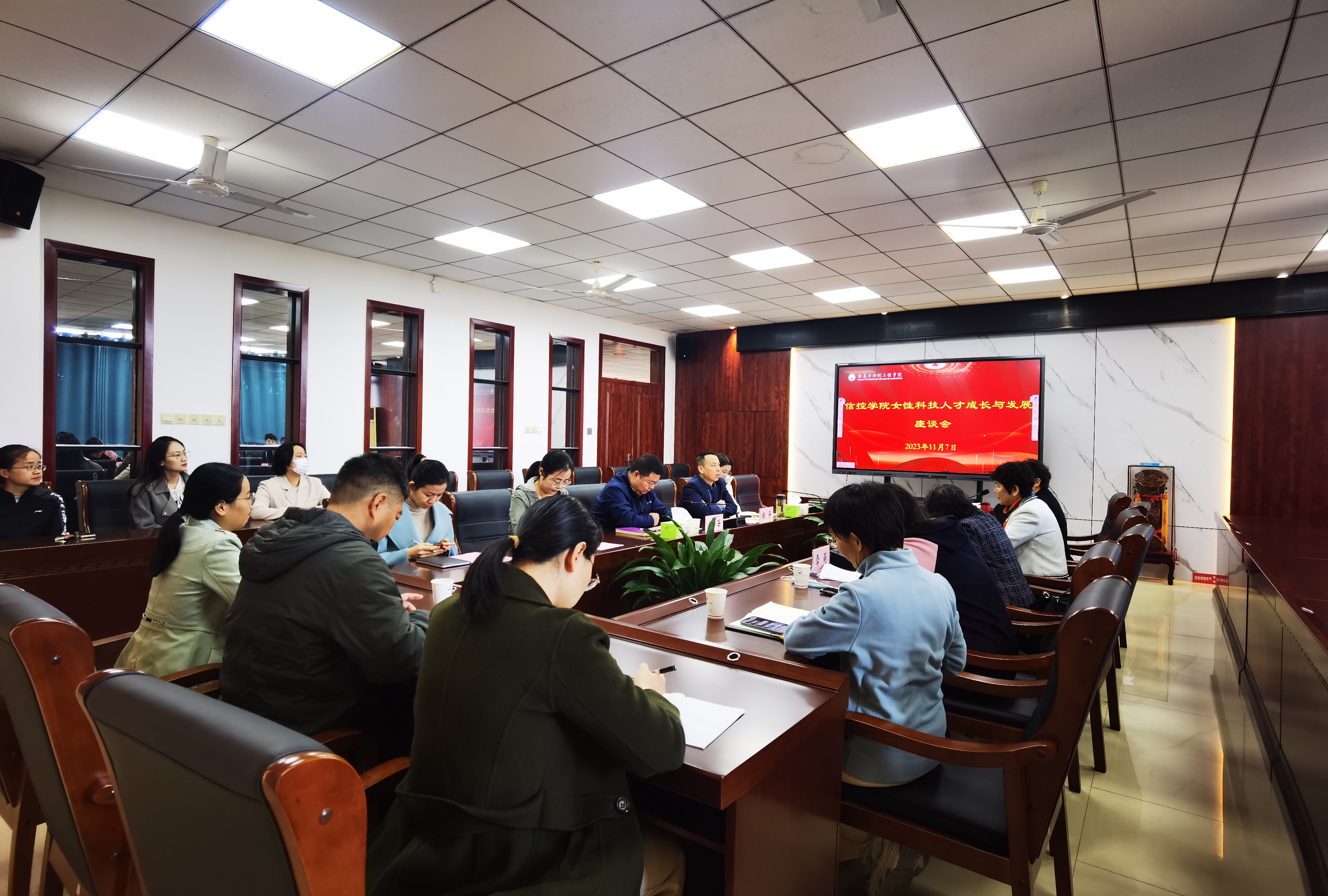 在A311会议室召开女性科技人才成长与发展座谈会。校工会副主席、校妇委会主任夏军武,学院副院长刘海、陈平,院关工委常务副主任王香婷,院教职工党支部书记,院工会、妇委会、团委等群团组织负责人以及女教职代表等参加会议。会议由院妇委会主任雷萌主持。