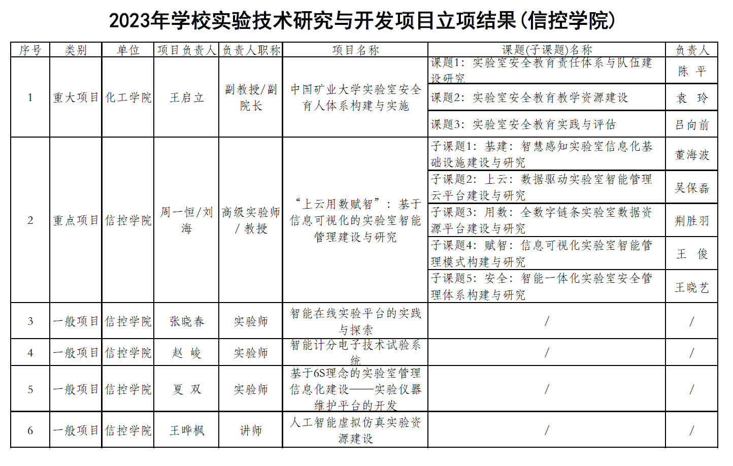 附件:2023年实验技术研究与开发项目立项名单(澳门6合彩开奖