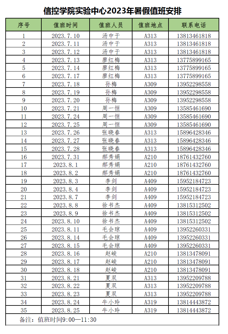 澳门6合彩开奖 实验中心2023年暑假值班安排